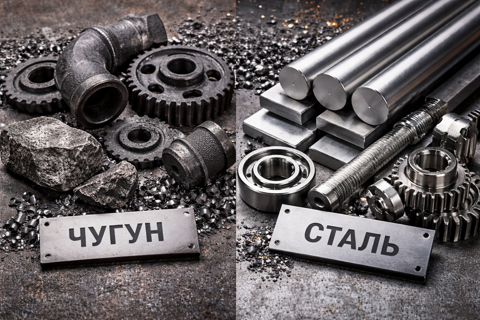 При выборе металла для детали, корпуса, трубы или крепежа почти всегда возникает один и тот же вопрос: чем отличается чугун от стали и насколько чугун и сталь - разница важна именно в вашем случае. Ошибка в выборе часто приводит не к “плохому металлу”, а к неверно подобранным свойствам: где-то нужна пластичность и ударная вязкость, а где-то - жесткость, стабильная геометрия и хорошее демпфирование. Поэтому разница между чугуном и сталью начинается с состава и структуры, а дальше влияет на обработку, сварку и срок службы.